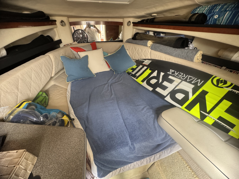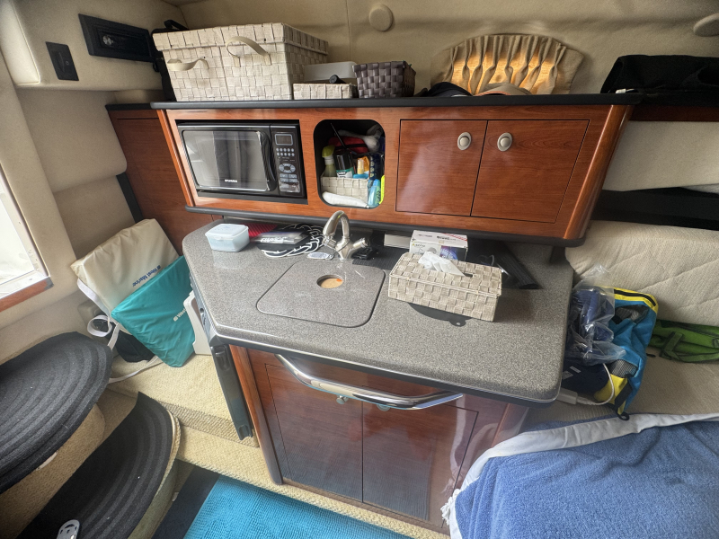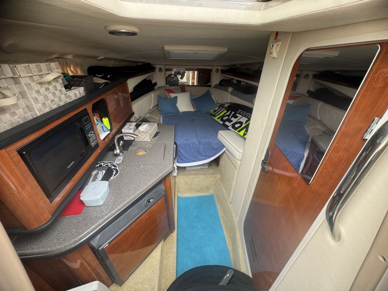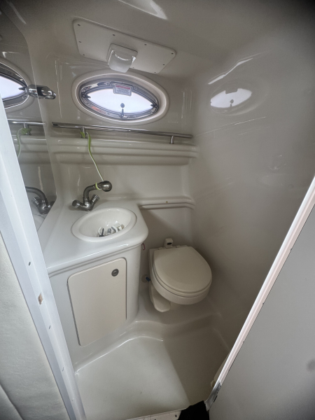 試運転結果良好な委託販売艇です。船内も綺麗にお使いになっています。シーレイはバキューム式マリントイレがあり、陸電接続時には船内で100V通電させての電子レンジなど使用出来ます。シーレイはクルージングに使うのは一般的ではありますが、アンバージャックは釣りがしやすように考えられたアフトデッキに仕上がっています。