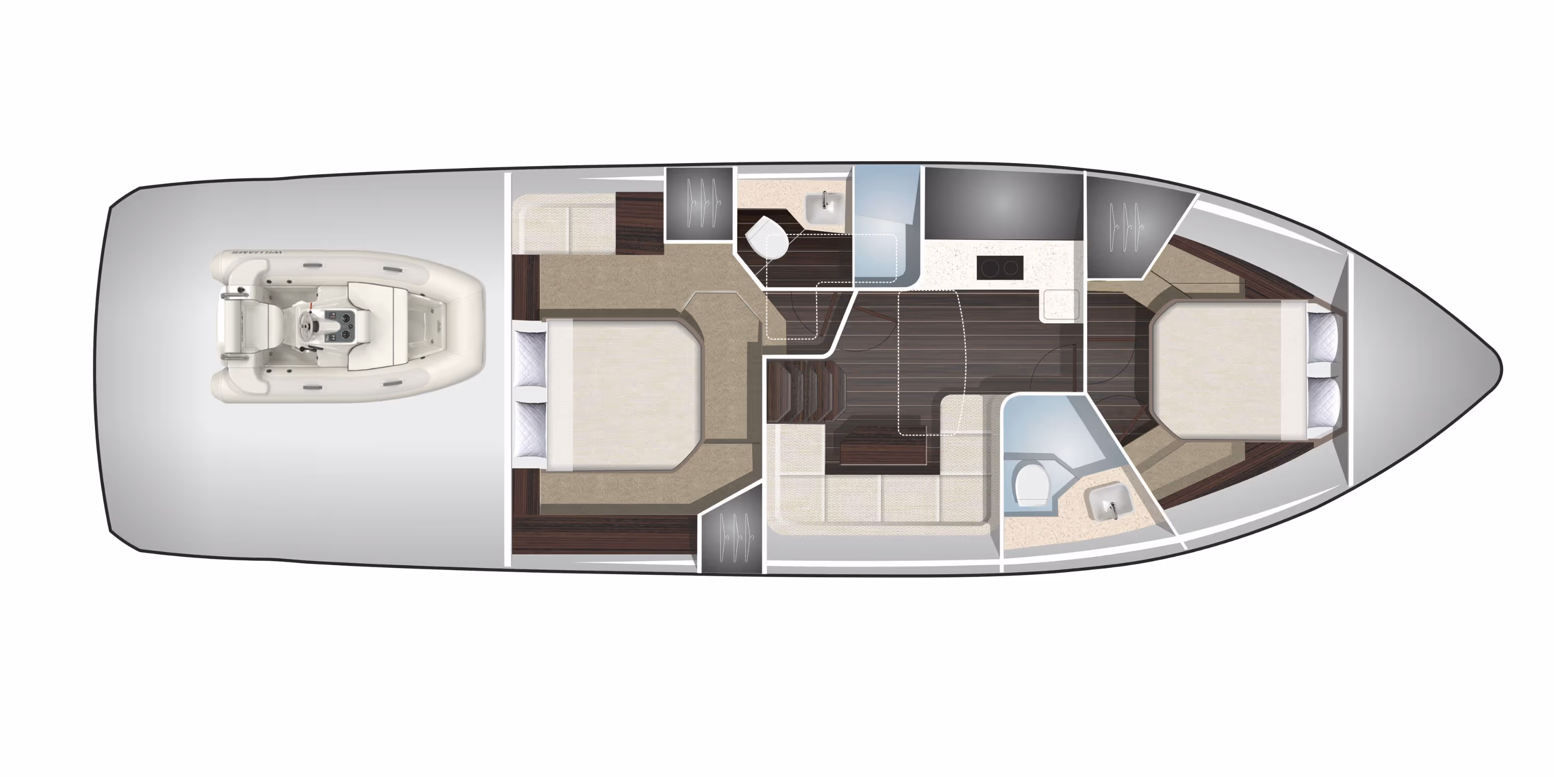 Step aboard and discover thoughtfully designed spaces that combine comfort, functionality, and style. Whether you're relaxing on the flybridge, enjoying the aft cockpit, or soaking in the sun on the bow, every deck is crafted to elevate your time at sea.