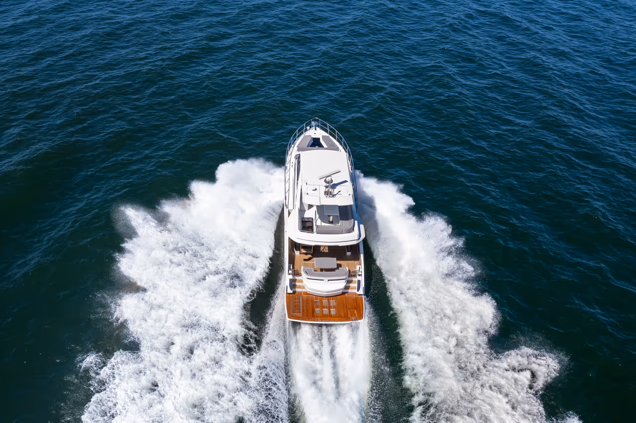 - A fully equipped upper deck with sunpads, a wet bar, helm station, and flexible seating – ideal for open-air living.