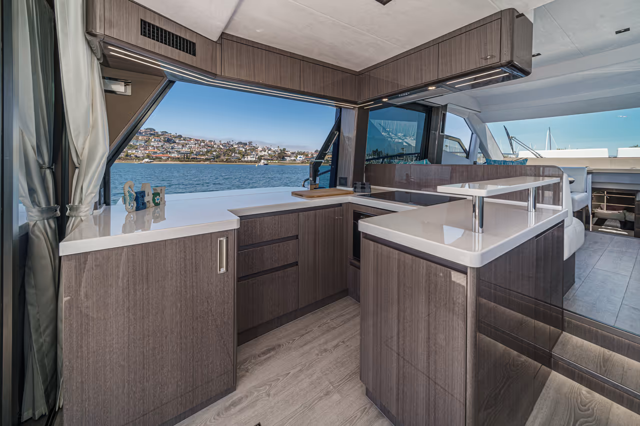- Smartly positioned galley with premium appliances and ample storage – ideal for entertaining and long-range cruising.