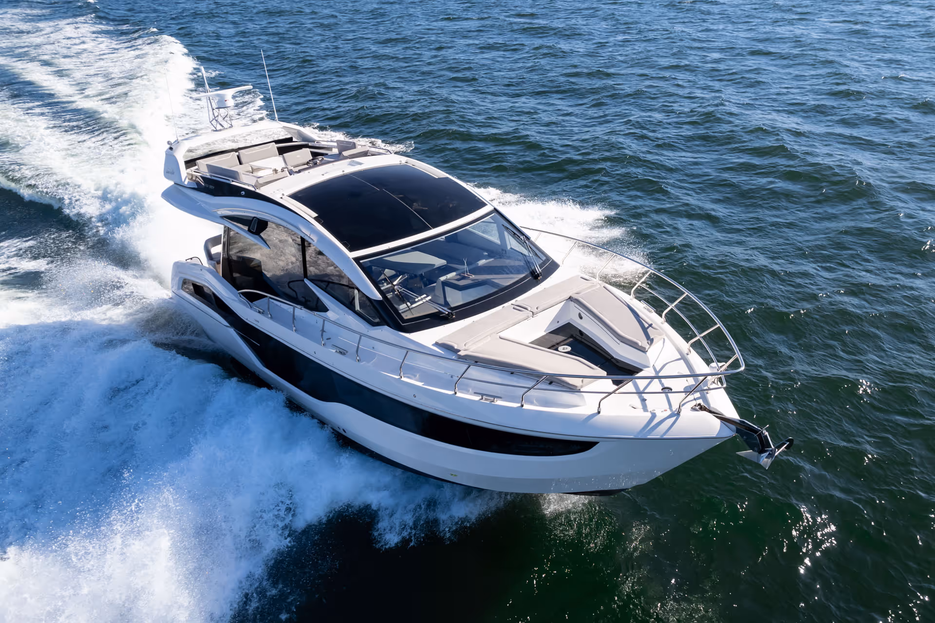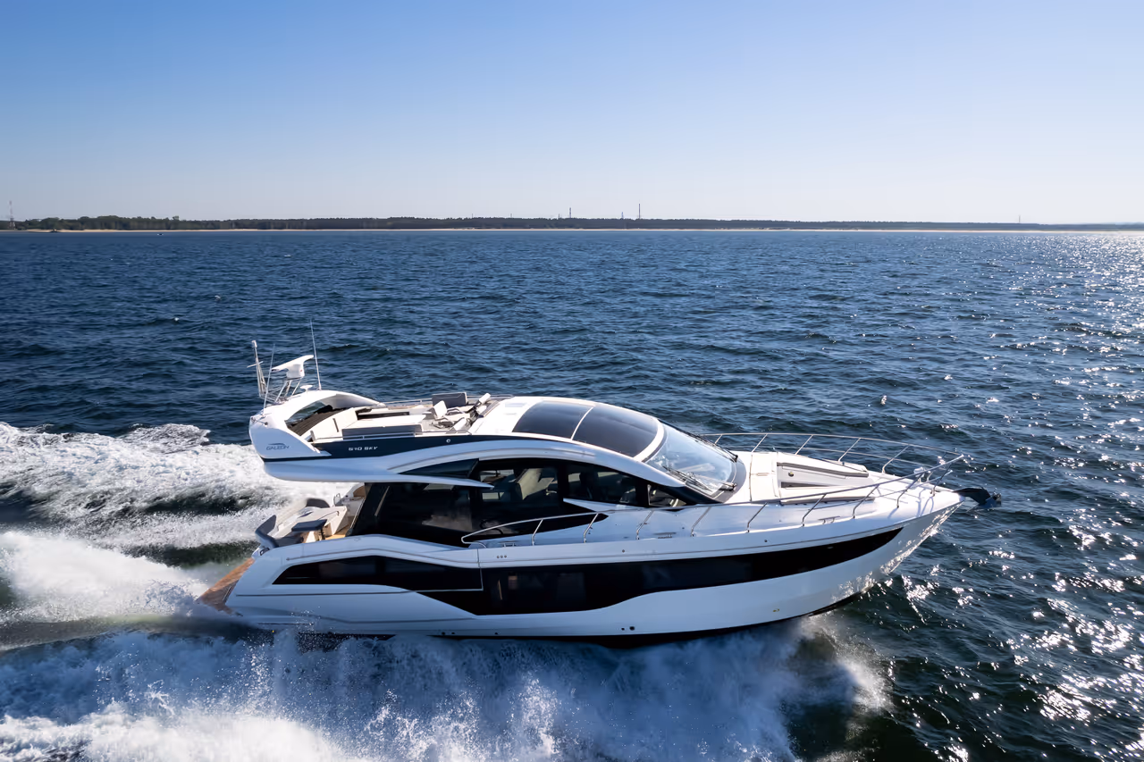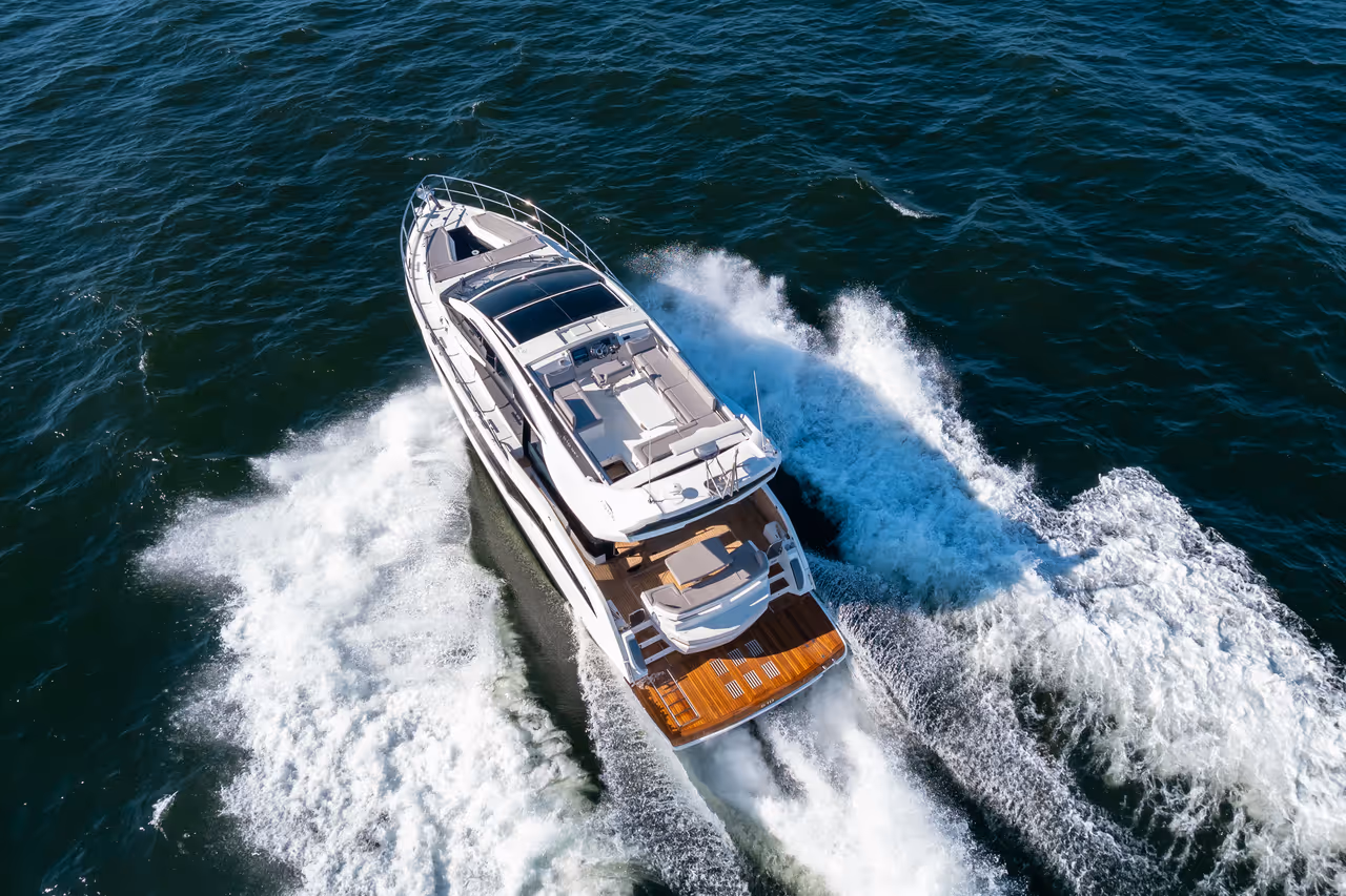 From the moment you step on board this 50-foot beauty, the sea feels closer than ever. The sleek profile hides a fully functional Skydeck, where a U-shaped sofa, companion seat by the helm, and barbecue area create the perfect setting for open-air dining and shared adventures.