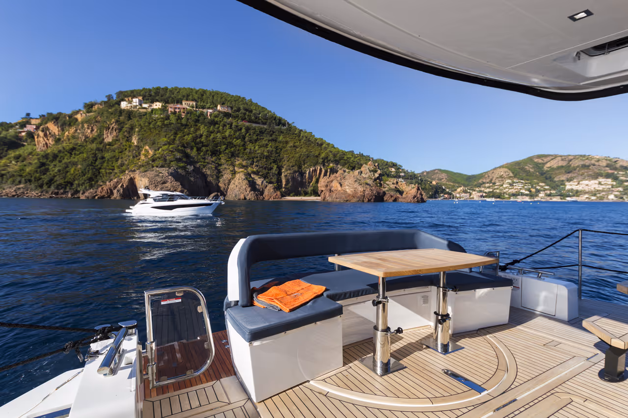 - Smart Aft Seat can face the cockpit or the water for flexible lounging.