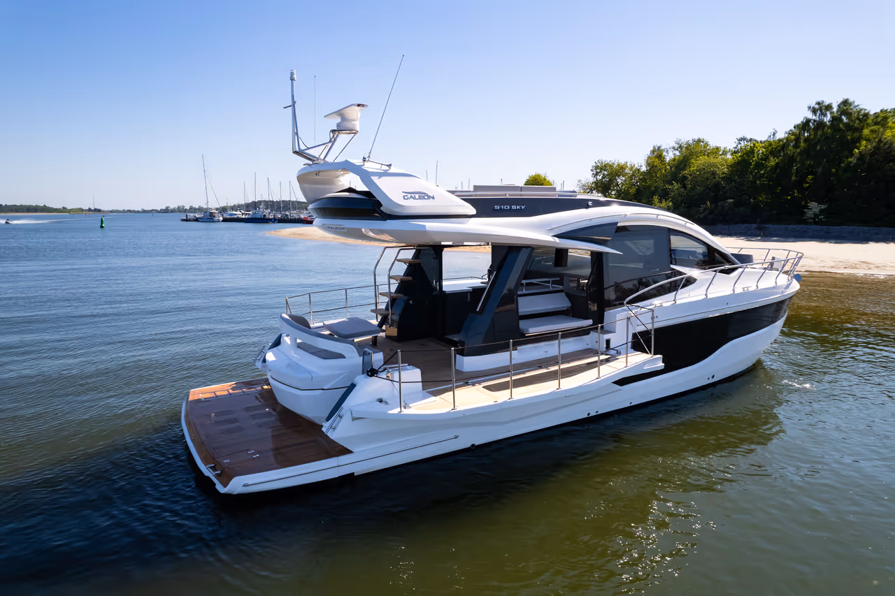 When it’s time to dive in, the large hydraulic bath platform becomes your own floating beach — a place to swim, launch your toys, or simply sit with your feet in the water, watching the horizon stretch endlessly ahead.