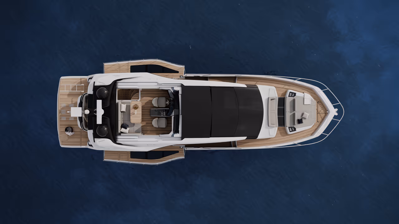 blends the sporty silhouette of a hardtop with the full functionality of a flybridge.