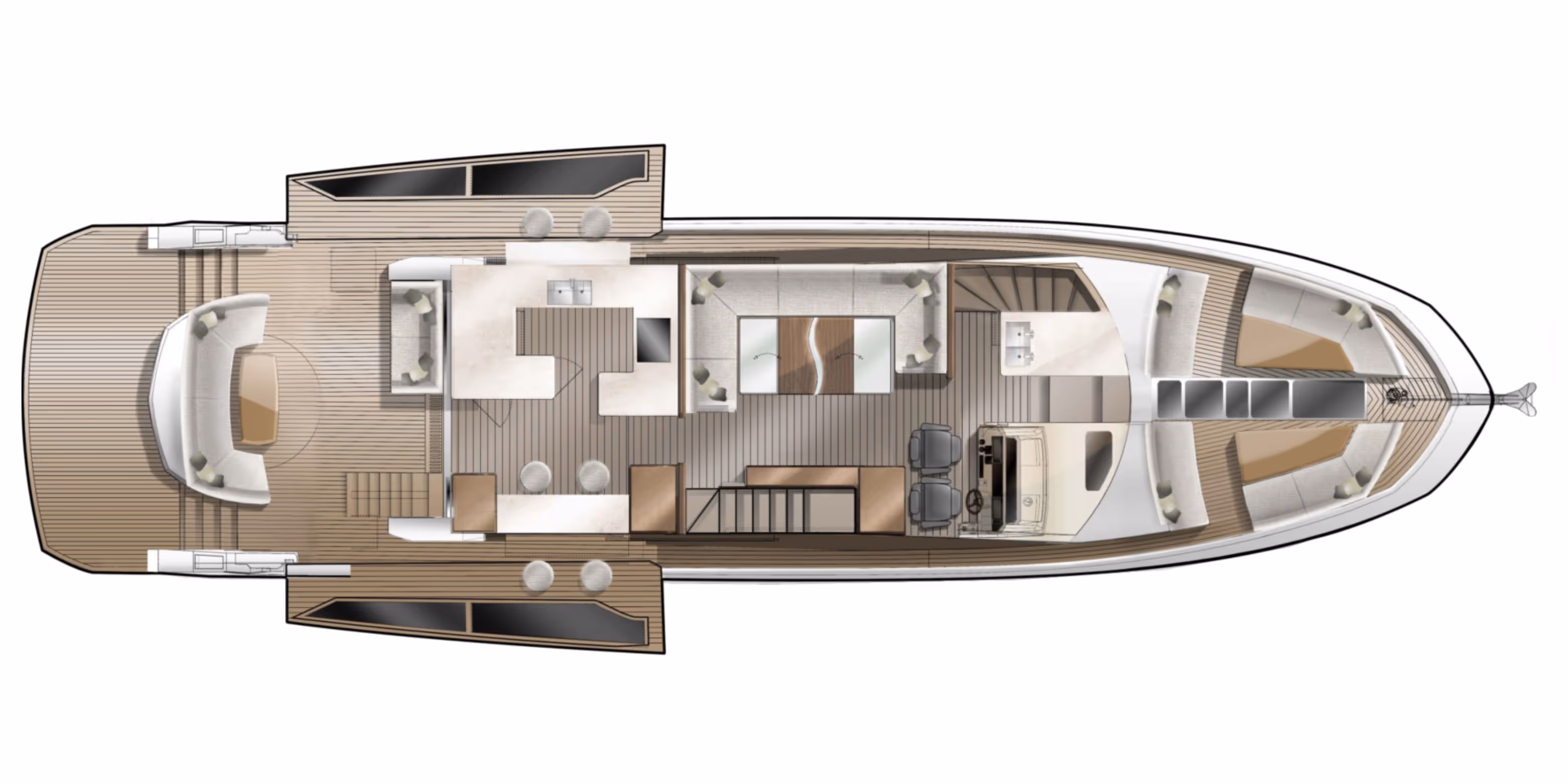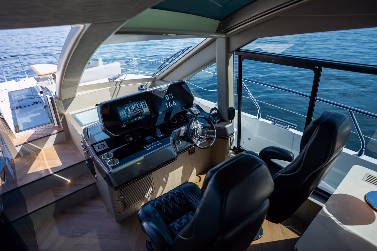 Experience the perfect balance of space, innovation, and comfort with this exceptional model. Its spacious and intelligently designed flybridge invites you to enjoy open-air cruising like never before – with ample seating, panoramic views, and effortless access to every area on board. Whether you're relaxing in the sun or hosting guests in style,this innovative and comfortable yacht offers everything you need for unforgettable moments at sea.