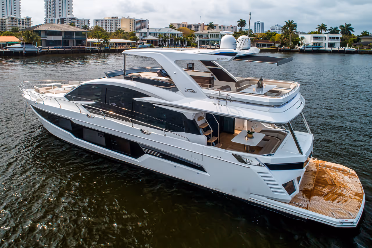 Elevate your journey. Set sail aboard the Galeon 680 Fly—the essence of luxury cruising.