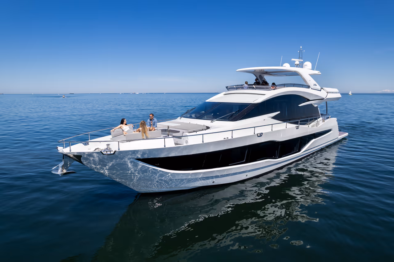 The Galeon 800 FLY masterfully blends timeless elegance with modern innovation, offering expansive living spaces, breathtaking panoramic views, and seamless indoor–outdoor flow. With its bold design, refined craftsmanship, and thoughtful layout across all decks, it sets a new benchmark in the 25-meter luxury yacht segment.