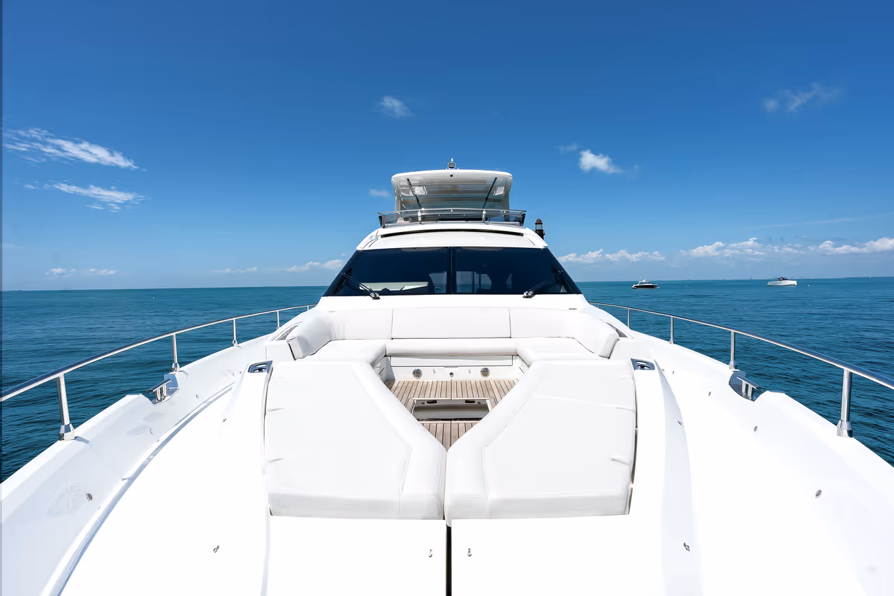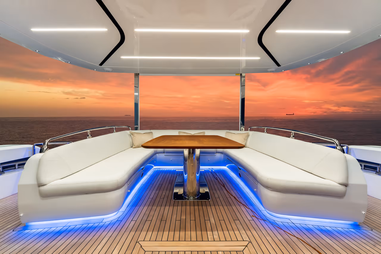 - A rare and luxurious front-facing seating area on the flybridge, offering privacy, panoramic views, and a peaceful escape above the water.