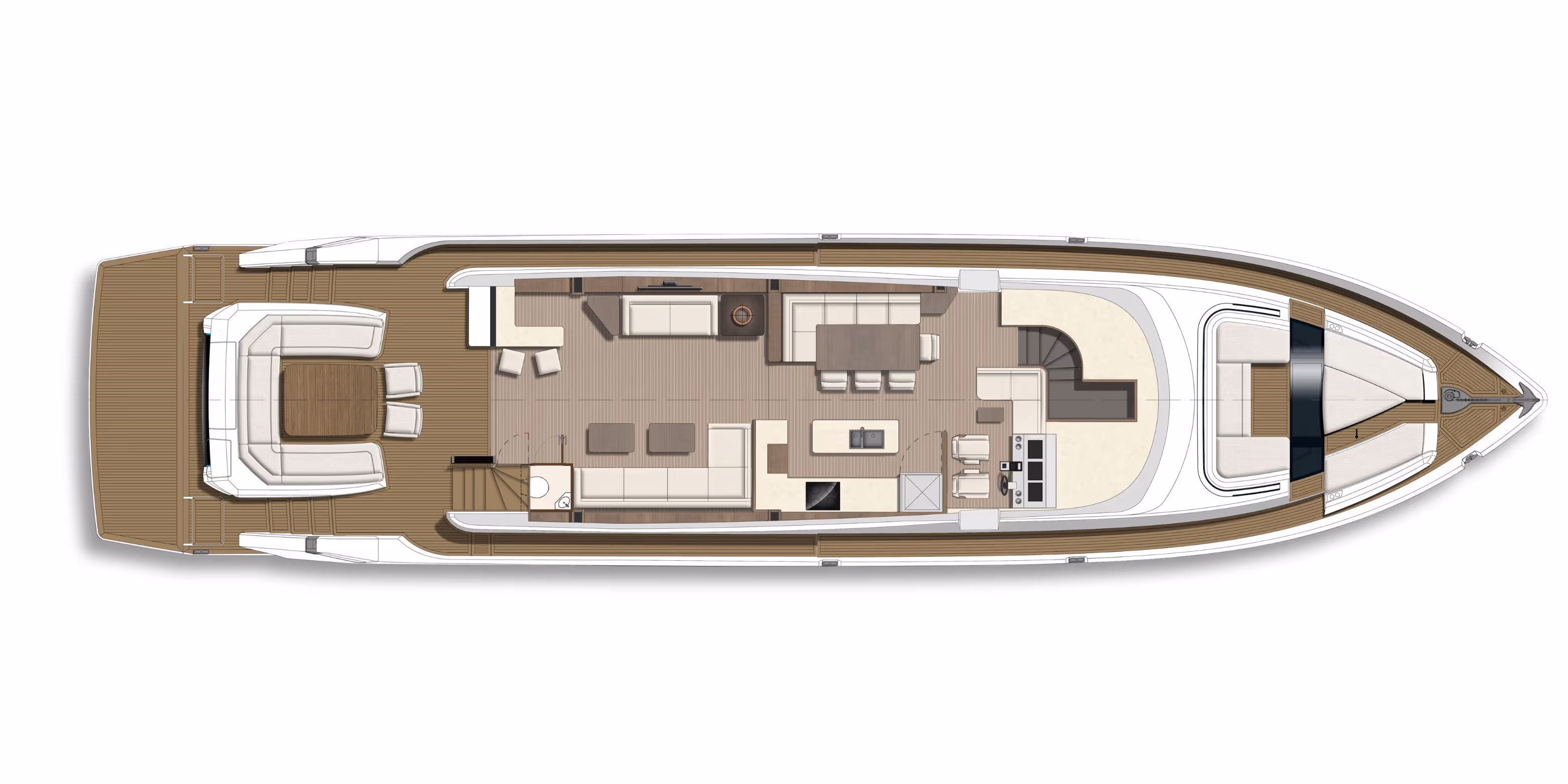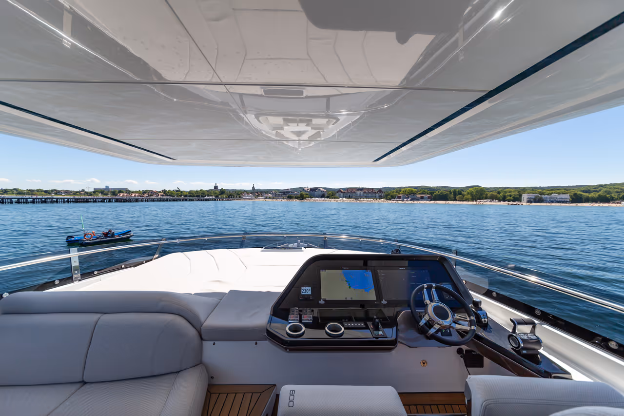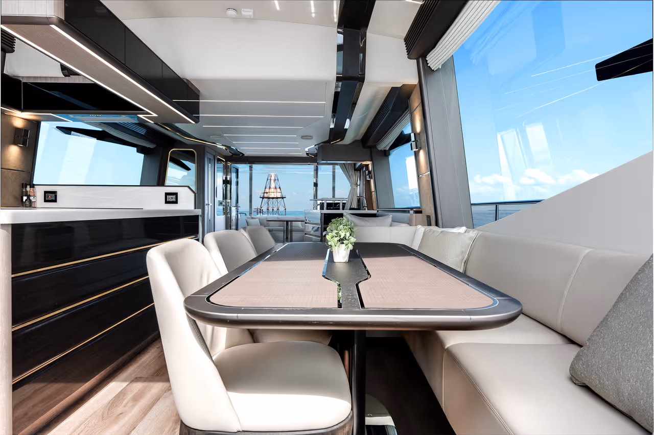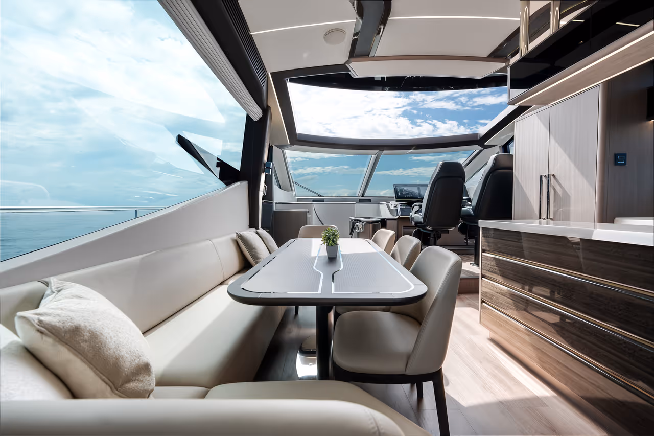 - From the flybridge to the foredeck and the aft cockpit, each area is designed as a dedicated space to relax, dine, and connect – no matter the moment.